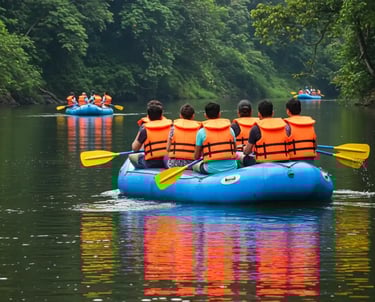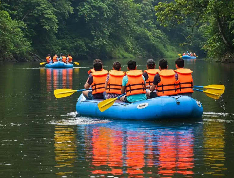 Boating on the Kali River in Dandeli offers a peaceful and relaxing experience, a contrast to the high-adrenaline water sports.