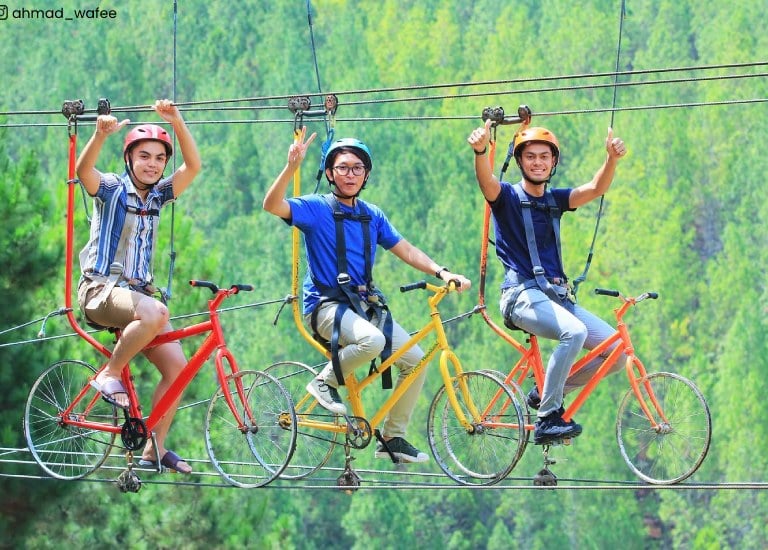 Sky Cycling is a thrilling adventure where you ride a specially designed bicycle along a secure cable high above the ground.